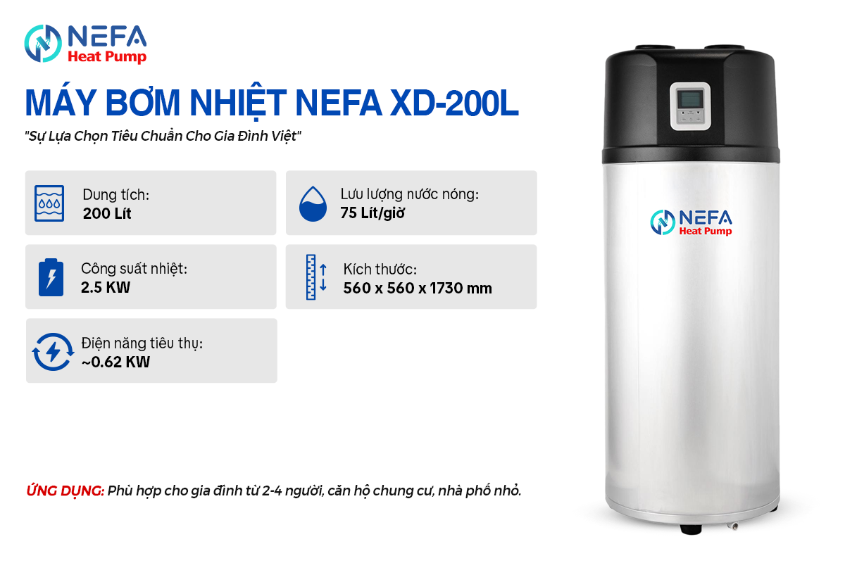 2. MÁY NƯỚC NÓNG TRUNG TÂM NEFA XD-200L