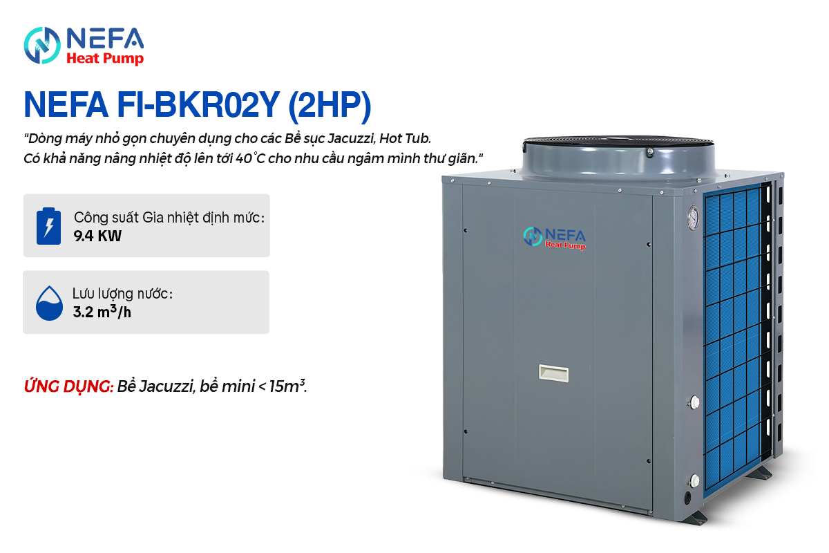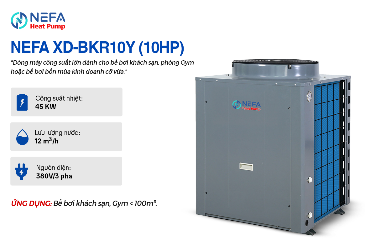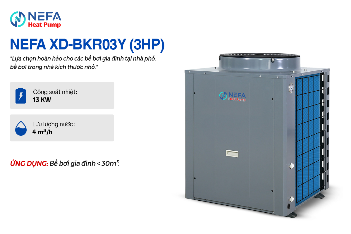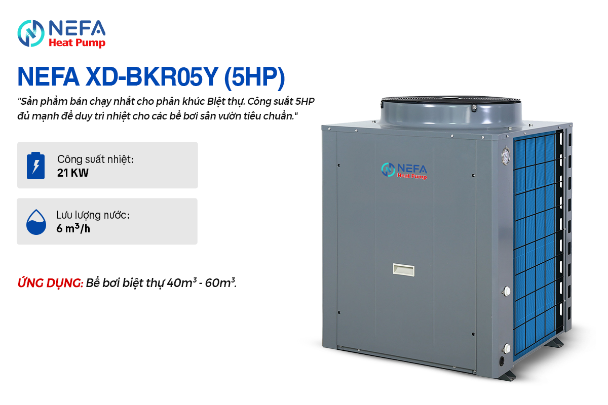 Tại Việt Nam, mùa đông miền Bắc hay những ngày mưa lạnh thường khiến các bể bơi tại gia đình và Resort bị bỏ không lãng phí. Máy Nước Nóng Trung Tâm Heat Pump NEFA – Bể Bơi chính là chìa khóa để giải quyết vấn đề này. Biến bể bơi thường thành “Bể bơi bốn mùa”, giúp gia chủ và khách hàng tận hưởng niềm vui bơi lội thư giãn trong làn nước ấm áp quanh năm. Với công nghệ trao đổi nhiệt Titanium tiên tiến, NEFA cam kết độ bền vượt trội ngay cả trong môi trường nước mặn hay hóa chất khắc nghiệt.